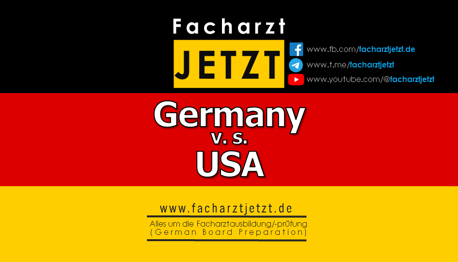 Exams for medical license | In most cases, you only need a medical language exam and this is nothing compared to the USMLE exams. Other times, a Kentnisseprüfung (medical knowledge exam) must be taken, and in most states, it is much easier than the American exams, and it is only an oral exam. It is about 95% a clinical exam. • If you got bad marks in the USMLE, you can forget about getting many specialties, not to mention, that you might not get a residency position in the first place! In Germany, no marks. 😊 You either have the medical license or do not have it. | USMLE is harder and much more complex. You need to study basic specialties again. |